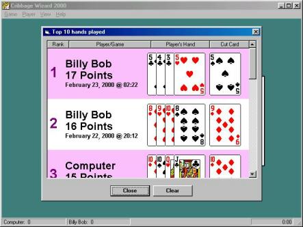 played. Has all the features of Cribbage Wizard 1.x plus, keeps track of best games,
