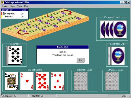 you. The computer challenges you to a cribbage game with an enjoyable card game interface and