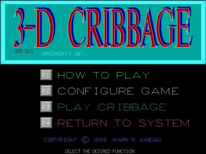 mouse. VGA video required. 3D Cribbage works with DOS 3.x or later. Just