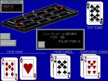 has the best graphics ever developed for a cribbage game for DOS. User selects speed