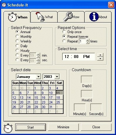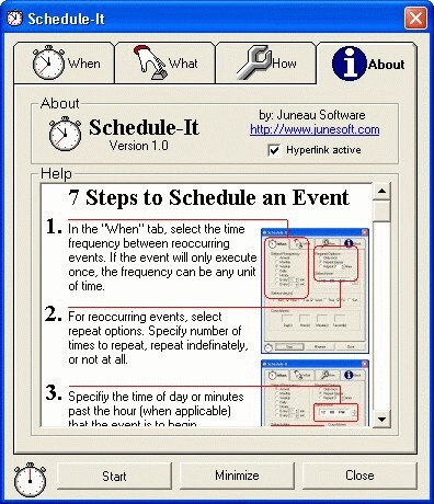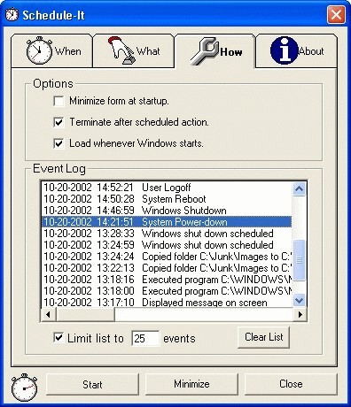 execute a batch file, activate a Windows shortcut, copy file(s) to another location, or shut-down your computer. Events can be